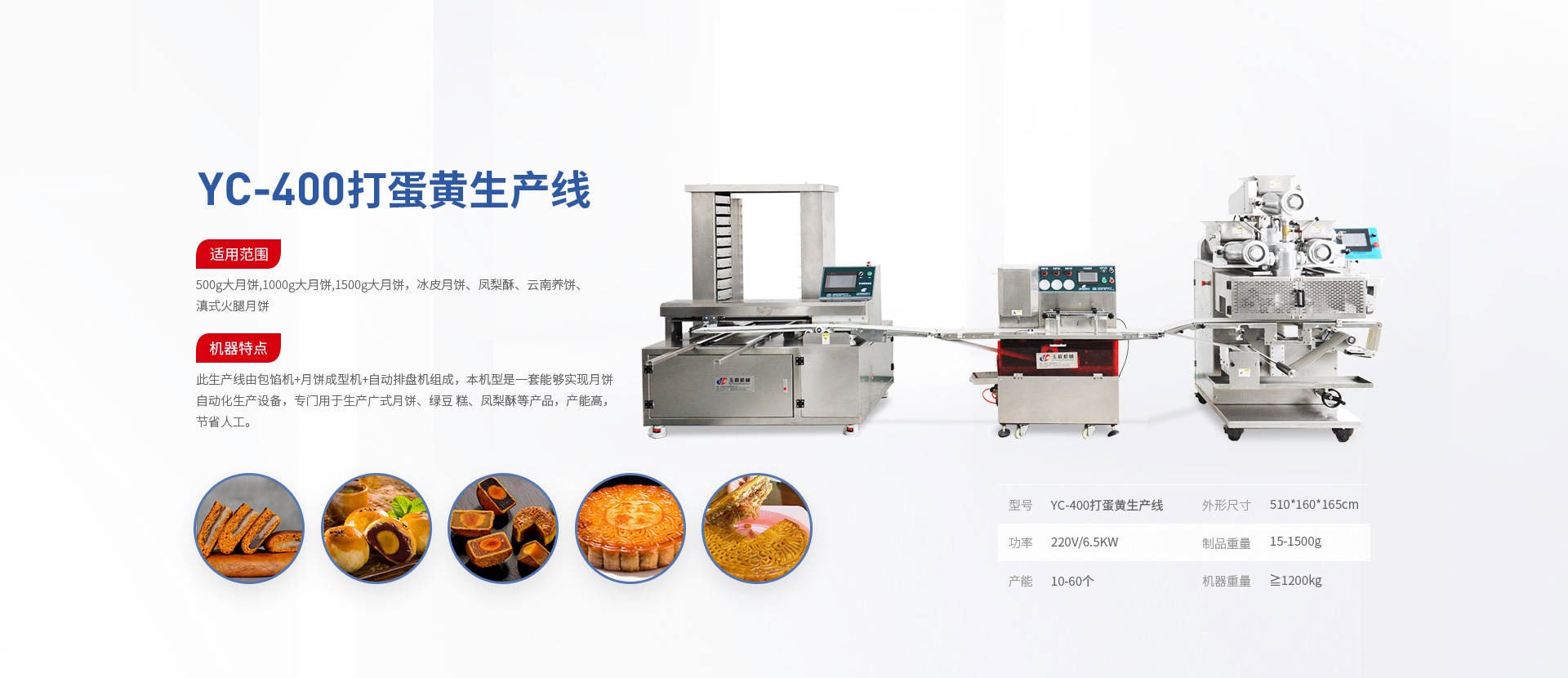 主營產品有:包餡機、全自動曲奇生產線、超聲波曲奇生產線、全自動酥餅開酥成型生產線、面包生產線、包子生產線、流心月餅生產線、蛋黃月餅生產線、麻薯青團生產線、水果大福生產線、水餃生產線、魚丸生產線、水晶包生產線等各類食品機械。